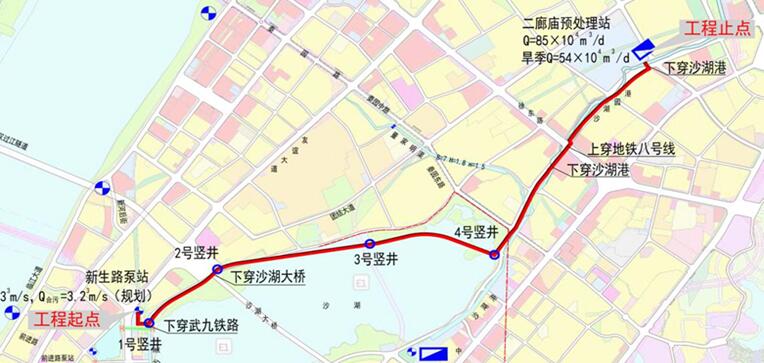 武漢長江、沙湖水環(huán)境提升工程是國家“長江大保護”戰(zhàn)略部署以及武漢水環(huán)境治理重要一環(huán),也是湖北省內(nèi)首次實施的最大直徑頂管工程。工程主線起于新生路污水泵站,穿越武九鐵路后,沿沙湖北岸線、沙湖公園、沙湖大道走向,進入二郎廟污水預處理站,中間由5780米長的大口徑地下管道相連。