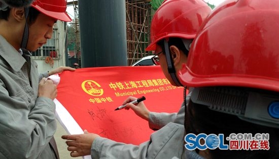 成都地鐵7號(hào)線二標(biāo)正在緊張施工,作為該標(biāo)段施工企業(yè)中鐵上海局21日啟動(dòng)了“首屆廉潔文化宣全周”活動(dòng)。現(xiàn)場(chǎng),還進(jìn)行了廉潔從業(yè)承諾簽名。